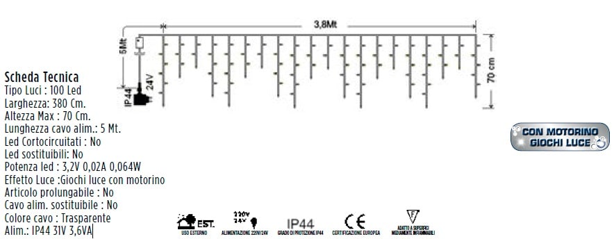 GIOCOPLAST NATALE SP - GCP14511075 TENDA SFALSATA 100 LED BIANCHI, - 14511075