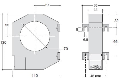 Wandler für Fehlerstromschutz-Relais rund Durchmesser 70mm für Relais HR. Wandler für Fehlerstromschutz-Relais HR rund Durchmesser 70mm (DIN EN 60947-2, IEC 60755, IEC 61008-8).