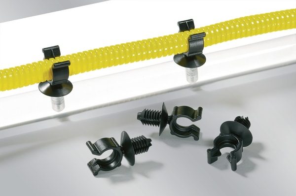 Clip CTC disponibili in un'ampia gamma di diametri. L'ancoraggio a pino può essere utilizzato per vari spessori pannello. Utilizzabili con fori filettati. Fissaggio del tubo con un semplice click. Il tubo non può scivolare grazi eallo speciale profilo interno di queste clip. Le clip CTC vengono utilizzate, ad esempio, nelle seguenti industrie: automotive, cablatori, elettrotecnica e ovunque sia necessario fissare rapidamente e saldamente tubi corrugati.