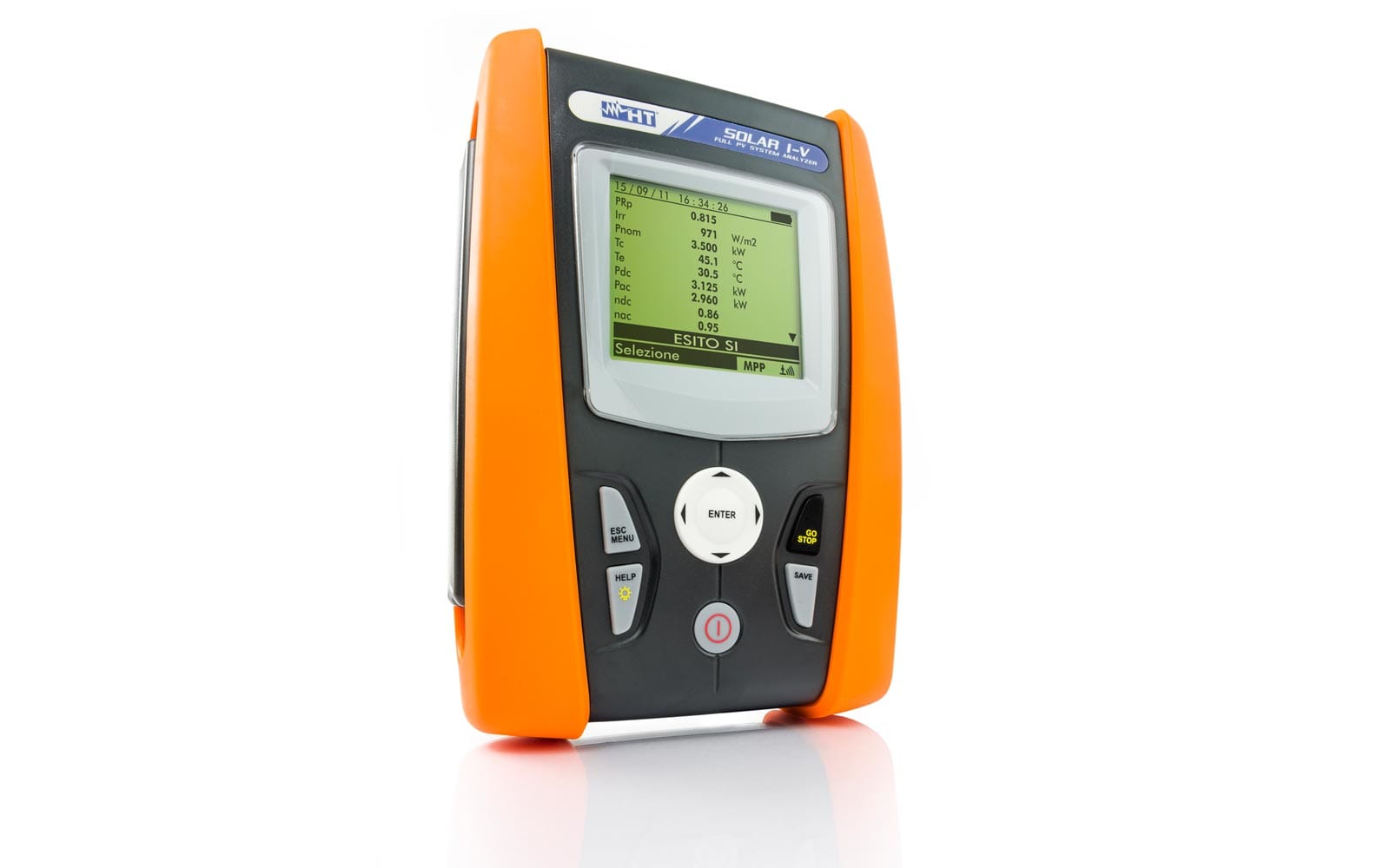 Strumento multifunzione per collaudi e manutenzioni su installazioni monofase. - Misura efficienza impianto fotovoltaico monofase - Misura della Caratteristica I-V di un modulo o di una stringa - Misura della tensione a vuoto e della corrente di cortocircuito Voc/Isc 1500V/10A - Database di 30.000 moduli fotovoltaici selezionabili SOLAR I-Ve consente di effettuare sia il collaudo di un impianto fotovoltaico monofase che la verifica della caratteristica IV. Grazie all’unità remota Solar 02 è possibile effettuare il collaudo dell’impianto soddisfacendo il requisito di simultaneità richiesto dalla normativa di riferimento. Il Solar 02 è un datalogger che sincronizzato con SOLAR I-Ve acquisisce i dati relativi all’irraggiamento e alla temeperatura simultaneamente alle verifiche effettuate da SOLAR I-Ve. Per la misura della caratteristica I-V, SOLAR I-Ve gestisce un database interno dei moduli aggiornabile in qualunque momento dall’utente e il confronto fra i dati rilevati e quelli nominali consente di determinare immediatamente se la stringa o il modulo rispetta i parametri di efficienza dichiarati dal costruttore. La misura di corrente e tensione (1500V / 10A oppure 1000V / 15A) in uscita dai pannelli/stringhe è eseguita con il metodo a 4 terminali che consente di prolungare eventuali cavi di misura senza considerare alcuna compensazione della loro resistenza, ottenendo misure sempre precise. A fine prova la visualizzazione sul display della curva I-V è una chiarissima indicazione circa la conformitào meno alle specifiche dichiarate dal costruttore dei pannelli.