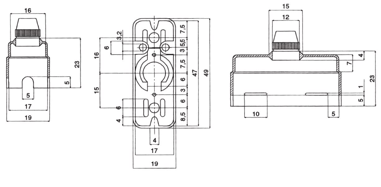 Costruiti in materiale termoplastico autoestinguente, per montaggio su piastra di fondo o su guida DIN. Sono forniti senza fusibile. Corpo: in materiale termoplastico autoestinguente. Esec. tappo: a vite. Morsetti: a vite. Fissaggio: a vite. Contatti: ottone nichelato. Esecuzione: unipolare con calotta di protezione. Dimensioni fusibile: 5x20 mm