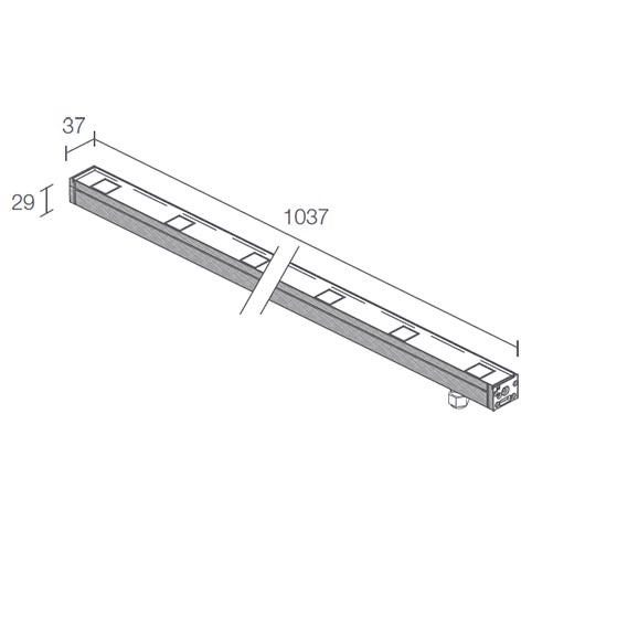Profilo lineare per installazione in esterni, sia con staffe orientabili sia ad incasso (calpestabile) mediante cassaforma, disponibile in diverse lunghezze. Power LED disponibili in tonalità bianca con ottiche arretrate, interdistanza sorgenti 120mm, dimmerabili. Alimentazione in 24Vdc con collegamento in parallelo, fornito cablato con 1,5 m di cavo in neoprene. Munito di sistemi di protezione IPS e NTC ed inoltre PCB tropicalizzata. MATERIALI: Corpo in alluminio estruso anticorodal lega EN AW 6060 contrattamento di anodizzazione. Schermo in vetro extrachiaro temprato e serigrafato. LED 16W 1035Lm 3000K M (30°) 24Vdc.