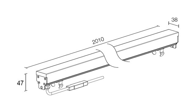 Profilo lineare da interni ed esterni; carrabile fino a 5000kg; 32W - 24 Vdc; power LED SMD; 3700K; luce diffusa; corpo in PMMA bianco opale estruso, testate in acciaio Inox AISI 316L e molle in AISI 301, cassaforma standard in alluminio estruso lega EN AW 6060; cassaforma in acciaio Inox disponibile; NTC controllo della temperatura a bordo; PCB tropicalizzati; temperatura di esercizio: -10°C +45°C; temperatura vetro: max 40°C (Ta 25°C); dotato di sistema IPS; grado di protezione contro i liquidi e i corpi solidi: IP67; grado di resistenza all'impatto IK10; sicurezza fotobiologica: gruppo rischio 2 secondo EN62471:2006; montaggio a incasso (parete, pavimento) con cassaforma; classe di isolamento III; peso: 1,20 kg/m; dimensioni 2010x38x47mm; collegamentoin parallelo; incluso 1,5 m di cavo in neoprene H05RN-F 2x0.35/0.75 Ø6.2; dimmerazione disponibile mediante utilizzo di dimmer in linea 24Vdc; accessori: cassaforma in alluminio WC8224; cassaforma per cartongesso WC8424; cassaforma in acciaio Inox WC8254; kit allineamento casseforme in alluminio WN8010, kit allineamento casseforme in acciaio inox WN8011; coppia estrattori WN8002; kit anticaduta WN8102.