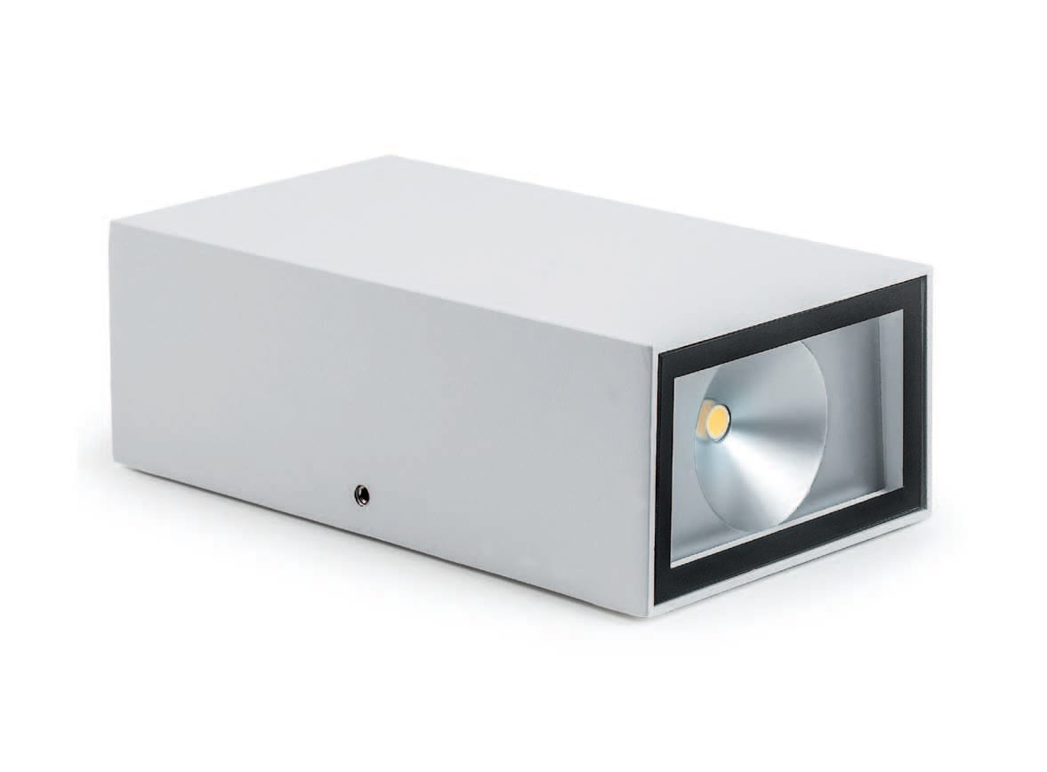 UP & DOWN LED QUADRATO 2 x 5 W. Faretto LED 230V in lega alluminio, per interno ed esterno con doppio fascio luminoso. LED COB 2x5W 2x430lm 4000K - 2x90°. Finitura corten.