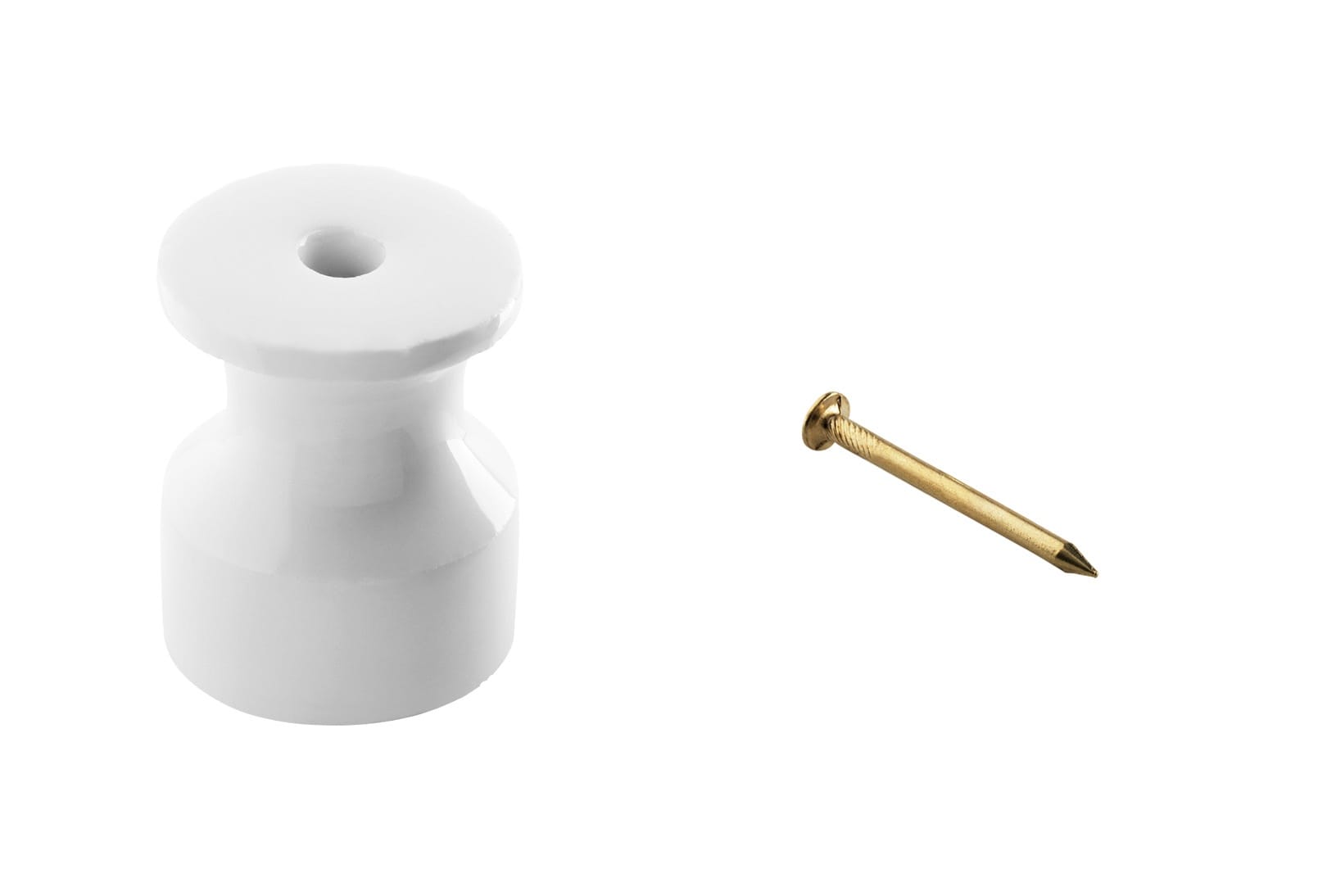 c'era una volta, vintage Isolatore ELITE in fine porcellana bianca diametro 18 mm - H 20 mm - Con chiodo ottonato