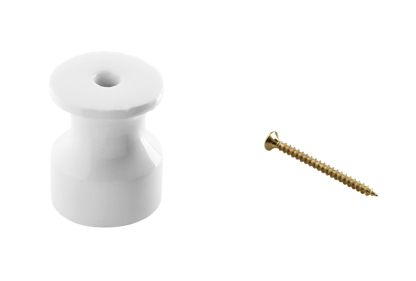 Isolatore ELITE in fine porcellana bianca diametro 18 mm - H 20 mm - Con vite ottonata