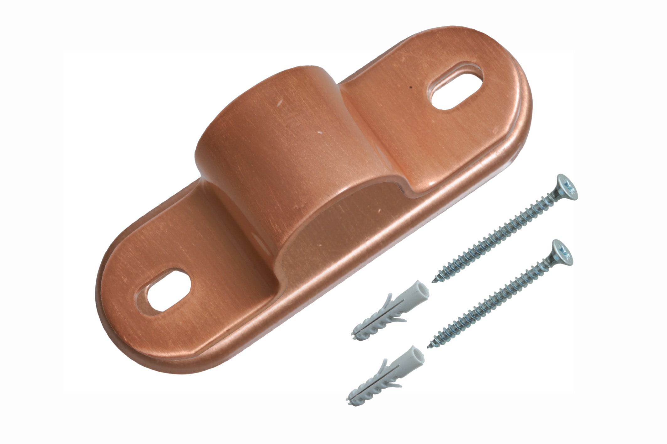 SERIE RAME Clips fermatubo in rame satinato con piastrina completo di viti e tasselli per tubi diametro 20 mm