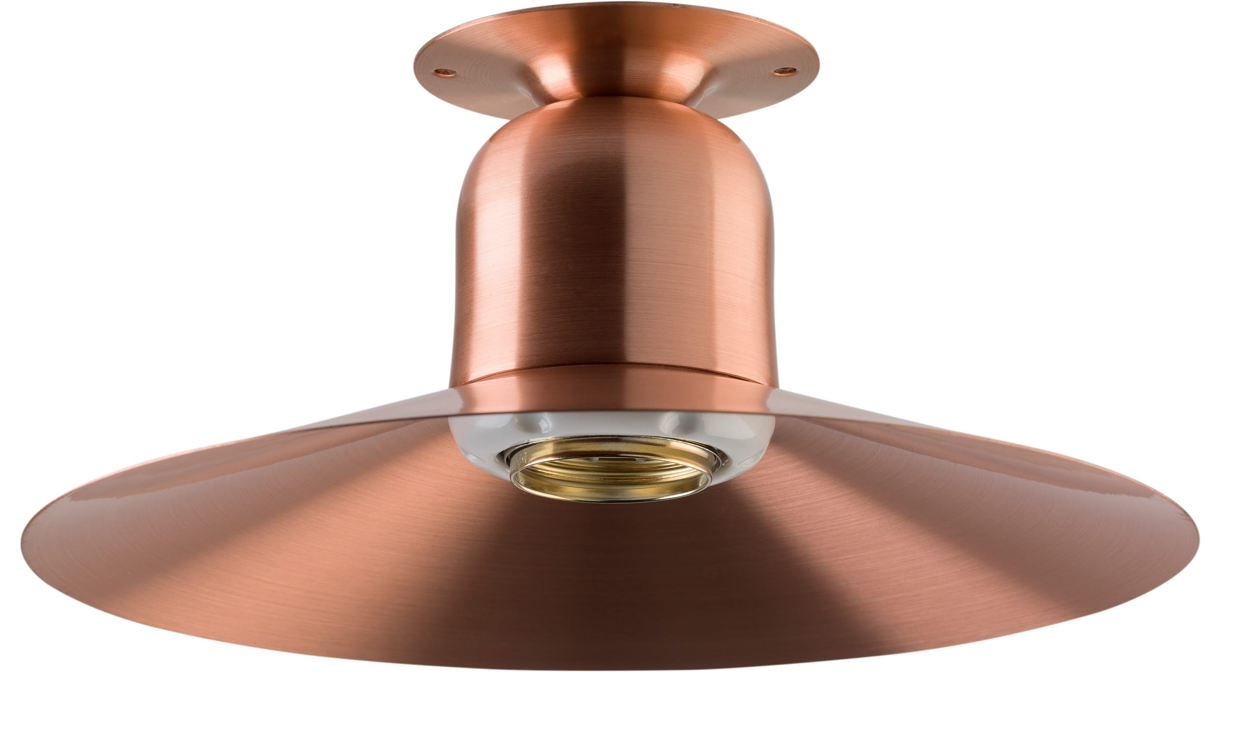 SERIE CLASSIC - IN RAME SATINATO Spot diritto a parete o soffitto - da usare singolo od in abbinamento a base rame o base porcellana 2.0 -Attacco E27 - Potenza 60W - Grado di protezione IP 20 Con ghiera in porcellana bianca - Con piatto liscio diametro 22 cm in rame satinato