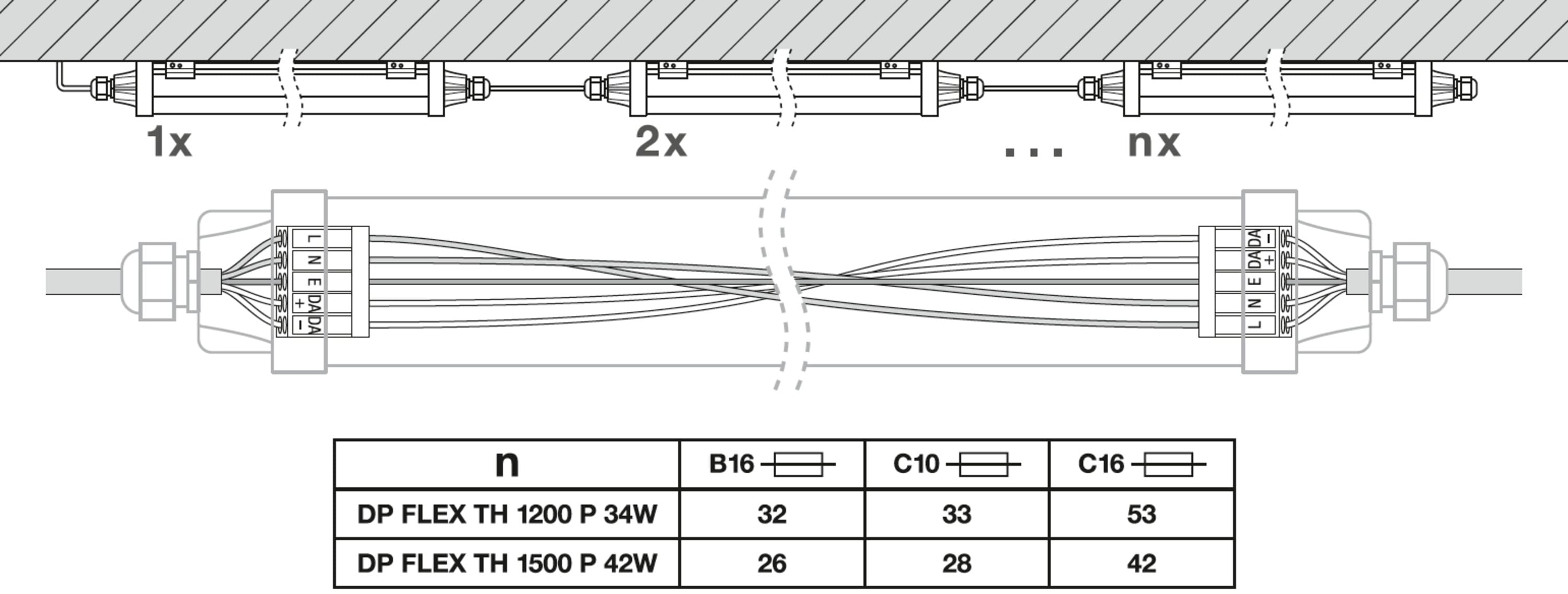 Max. Anzahl der Leuchten pro Leitungsschutzschalter C16: