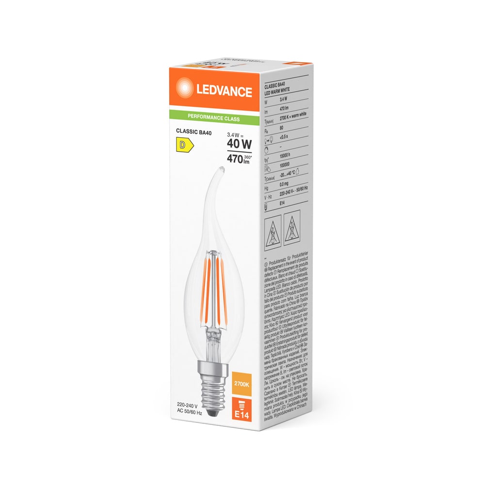 LEDVANCE - LDVPCBA40827CE12 LED CLBA40 3.4W 827 FILCL E14 P LEDV - PCBA40827CE12