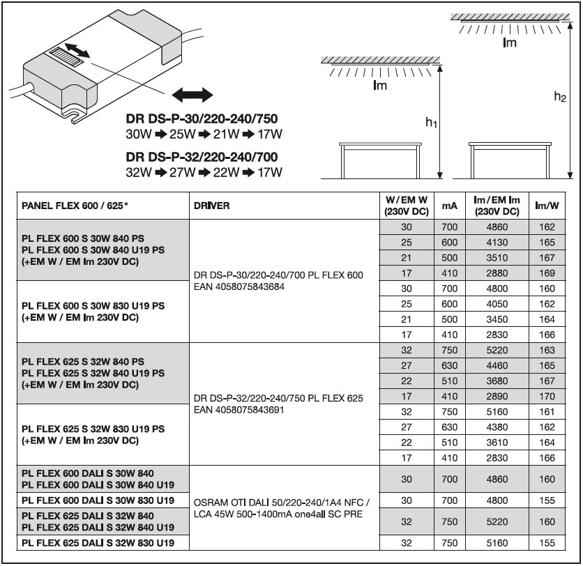 LEDVANCE - LDVPLFLX60030830UDA PL FLEX 600 DALI S 30W 830 U19 LEDV - PLFLX60030830UDA