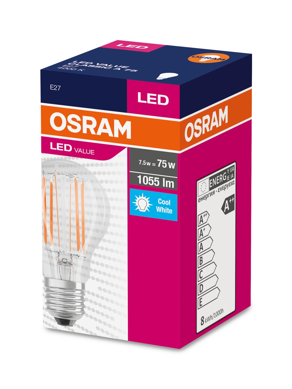 LEDVANCE - LDVVCA75840CG9 LEDVCLA75 7,5W/840 230V FIL E27 FS1OSRAM
