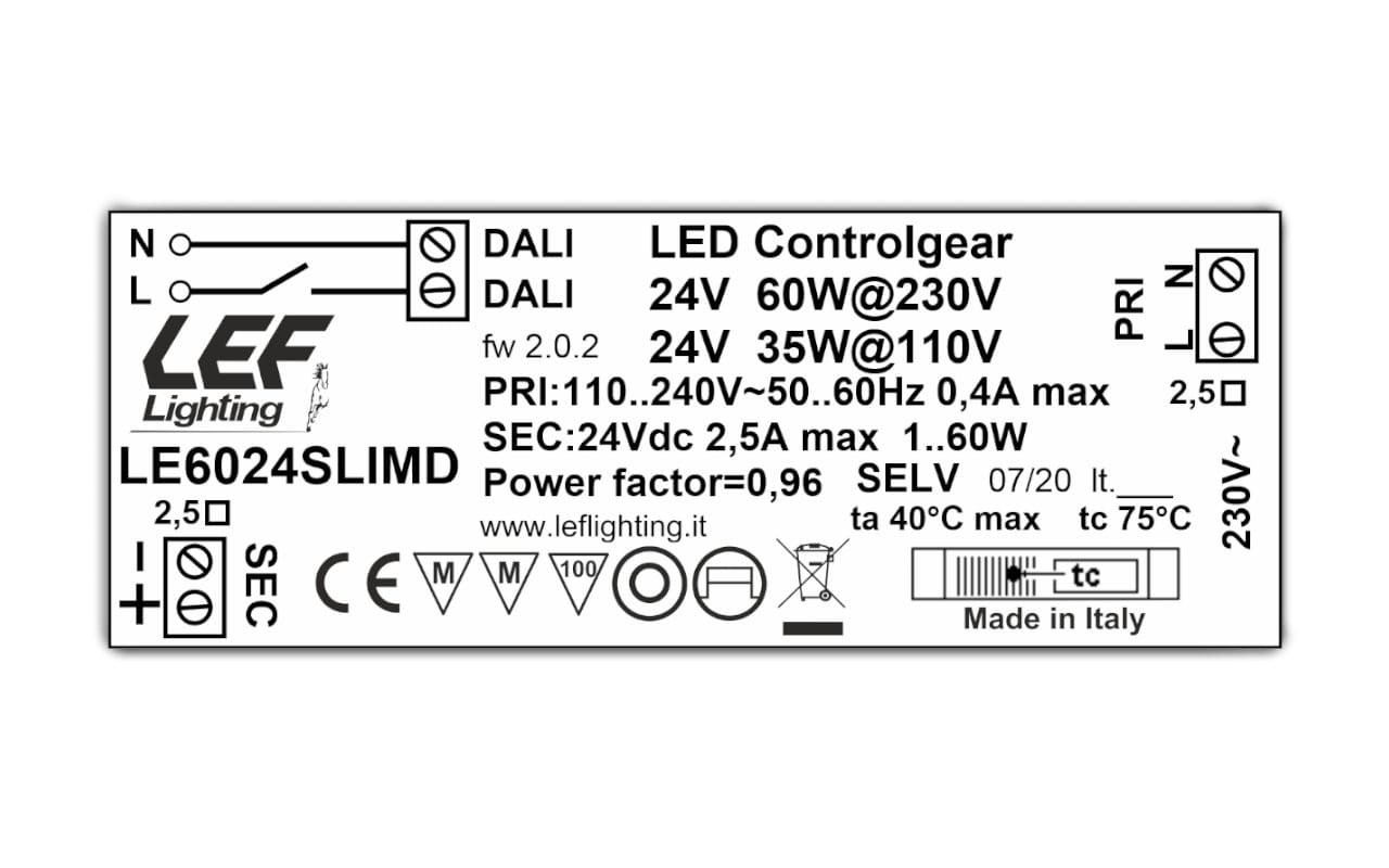 LEF LIGHTING SRL - LEFLE6024SLIMD ALIM. LED TENS. COSTANTE 60W 24VDC SLIM - LE6024SLIMD