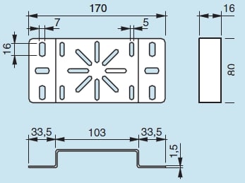 Supporto scatola di derivazione. Finitura Z: acciaio zincato sendzimir. Supporto per il montaggio di qualsiasi scatola di derivazione grazie alla foratura universale.