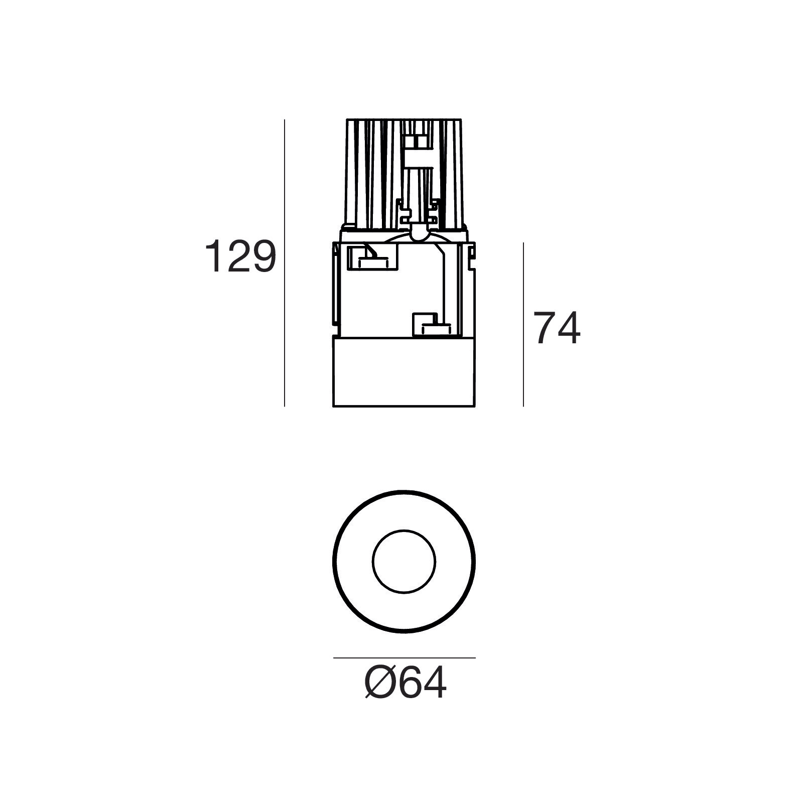 Downlights a singola emissione per applicazione indoor. La sorgente luminosa LED, di colore bianco caldo, con distribuzione luminosa Flood, è composta da 1 LED powerled, con una CCT 3000 K ed un CRI 80; il flusso luminoso della sorgente è di 1194 lm, con un'efficienza nominale di 119.4 lm/W.