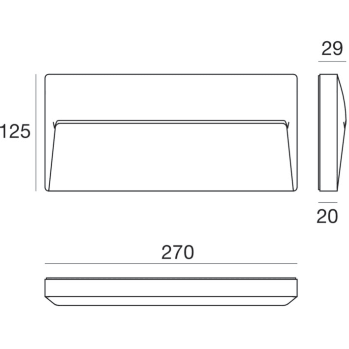 Lampada a parete a singola emissione per applicazione outdoor. La sorgente luminosa LED, di colore bianco naturale, con distribuzione luminosa Asymmetric Wallwasher, è composta da 30 LED topled, con una CCT 4000 K ed un CRI 80; il flusso luminoso della sorgente è di 1073 lm, con un'efficienza nominale di 112.9 lm/W. Il corpo dell'apparecchio, realizzato in alluminio pressofuso en ab - 46100, presenta una finitura di colore bianco ral 9003 goffrato, ottenuta tramite anodizzazione poro aperto + verniciatura a polvere; il diffusore è prodotto in vetro extra chiaro - temprato, con una lavorazione di serigrafia. Il grado di protezione è IP65; il peso complessivo è di 1 kg. La potenza assorbita dall'apparecchio è di 9.5 W. Il cavo per l'alimentazione è incluso e presenta.