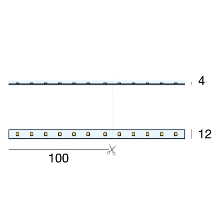 Led strip a singola emissione per applicazione outdoor. La sorgente luminosa LED, di colore super caldo, con distribuzione luminosa General Lighting, è composta da 700 LED topled, con una CCT 2700 K ed un CRI 85; il flusso luminoso della sorgente è di9000 lm, con un'efficienza nominale di 72.0 lm/W.