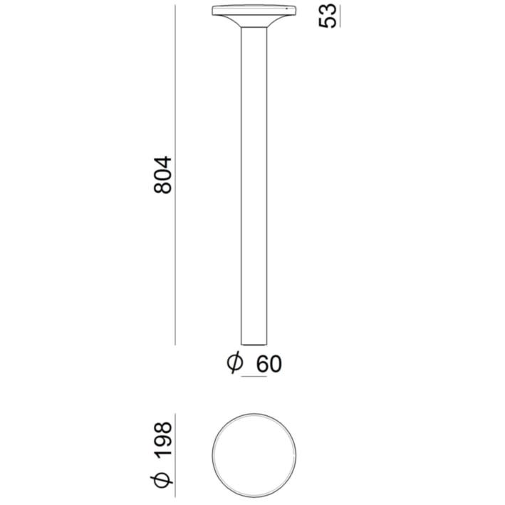 Paletti e teste palo a singola emissione per applicazione outdoor. La sorgente luminosa LED, di colore bianco caldo, con distribuzione luminosa General Lighting, è composta da 18 LED topled, con una CCT 3000 K ed un CRI 80; il flusso luminoso della sorgente è di 1350 lm, con un'efficienza nominale di 112.5 lm/W.