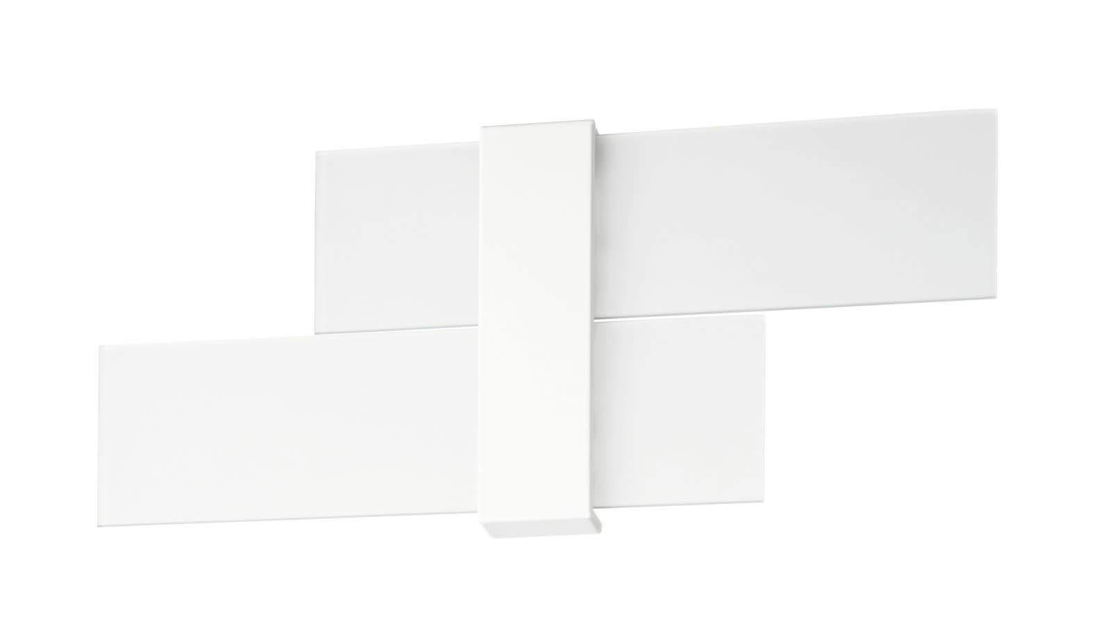 Lampada a parete a doppia emissione per applicazione indoor. La sorgente luminosa LED, di colore bianco caldo, con distribuzione luminosa General Lighting, è composta da 24 LED topled, con una CCT 3000 K ed un CRI 80; il flusso luminoso della sorgenteè di 1290 lm, con un'efficienza nominale di 143.3 lm/W.
