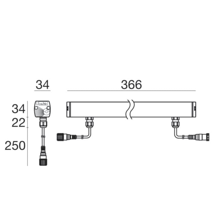 Elementi lineari a singola emissione per applicazione outdoor. La sorgente luminosa LED, di colore bianco caldo, con distribuzione luminosa Asymmetric Wallwasher, è composta da 48 LED topled, con una CCT 3000 K ed un CRI 80; il flusso luminoso della sorgente è di 801 lm, con un'efficienza nominale di 123.2 lm/W. Il corpo dell'apparecchio, realizzato in alluminio 6060, presenta una finitura di colore alluminio anodizzato, ottenuta tramite anodizzazione 20 µm. Il grado di protezione è IP66; il peso complessivo è di 0.55 kg. La potenza assorbita dall'apparecchio è di 6.5 W.