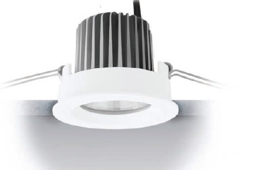 Downlights a singola emissione per applicazione indoor. La sorgente luminosa LED, di colore super caldo, con distribuzione luminosa Wide Flood, è composta da 1 LED arrayled, con una CCT 2700 K ed un CRI 80; il flusso luminoso della sorgente è di 770 lm, con un'efficienza nominale di 118.5 lm/W.
