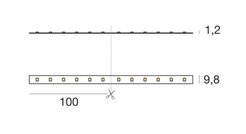 Led strip a singola emissione per applicazione indoor. La sorgente luminosa LED, di colore super caldo, con distribuzione luminosa General Lighting, è composta da 700 LED topled, con una CCT 2700 K ed un CRI 85; il flusso luminoso della sorgente è di 7375 lm, con un'efficienza nominale di 117.1 lm/W.
