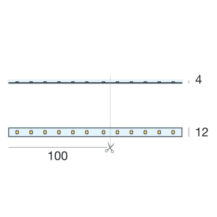 Led strip a singola emissione per applicazione outdoor. La sorgente luminosa LED, di colore super caldo, con distribuzione luminosa General Lighting, è composta da 350 LED topled, con una CCT 2700 K ed un CRI 85; il flusso luminoso della sorgente è di1495 lm, con un'efficienza nominale di 93.4 lm/W.