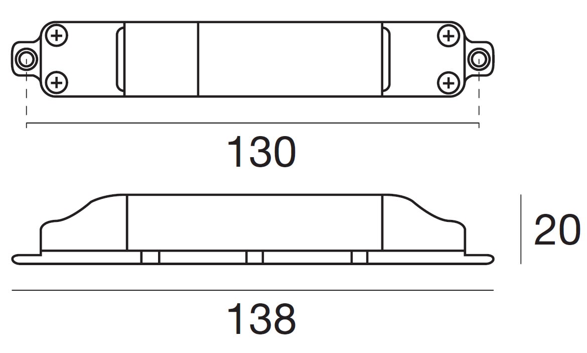 SLIM Comfort 230V AC 6W LED controlgear 500 mA 8V DC. Limitazione della corrente istantanea in uscita per protezione del LED all’accensione. Possibilità di inserire un interruttore lungo la linea in uscita. Protezione autoripristinante contro le sovratemperature, il sovraccarico, il circuito aperto ed il cortocircuito lungo la linea in uscita.