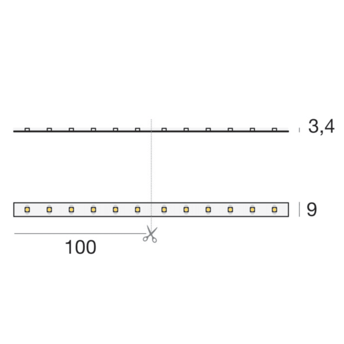 Led strip a singola emissione per applicazione indoor. La sorgente luminosa LED, di colore super caldo, con distribuzione luminosa Extra Wide Flood, presenta un'emissione, è composta da 300 LED topled, con una CCT 2700 K ed un CRI 80; il flusso luminoso della sorgente è di 2649 lm, con un'efficienza nominale di 106.0 lm/W.