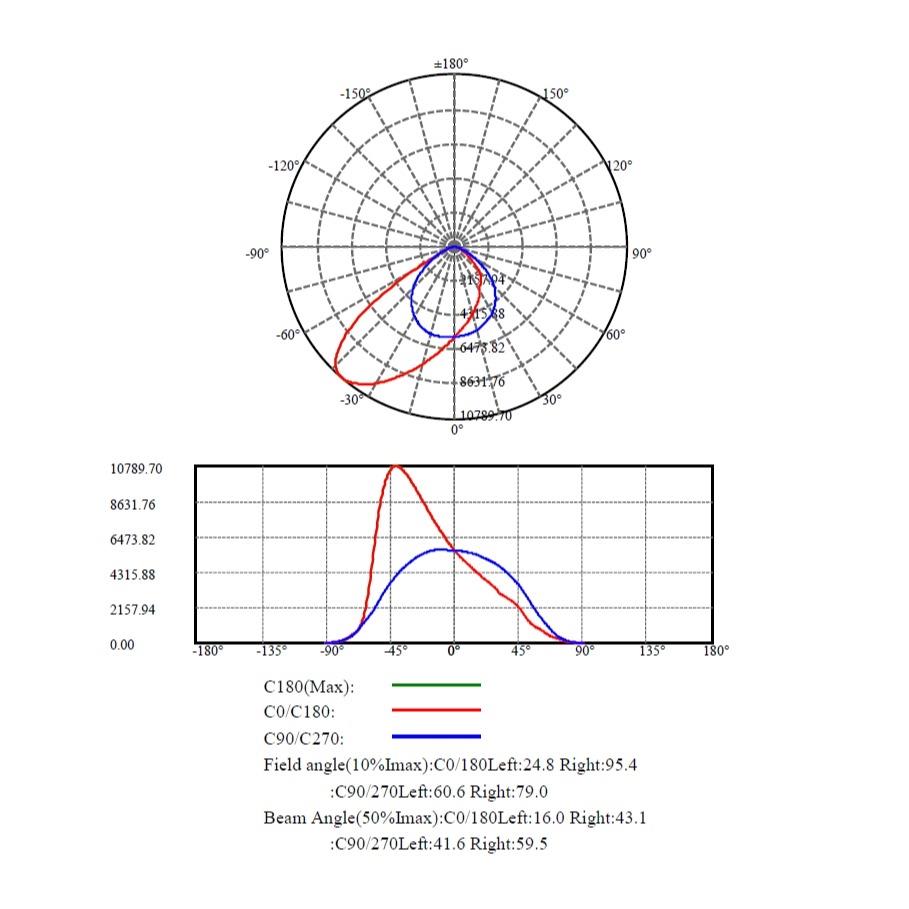 Faretto asimmetrico 100W, IP66, 16000lm, 160lm/W 3CCT 3000K/4000K/6500K, ON/OFF