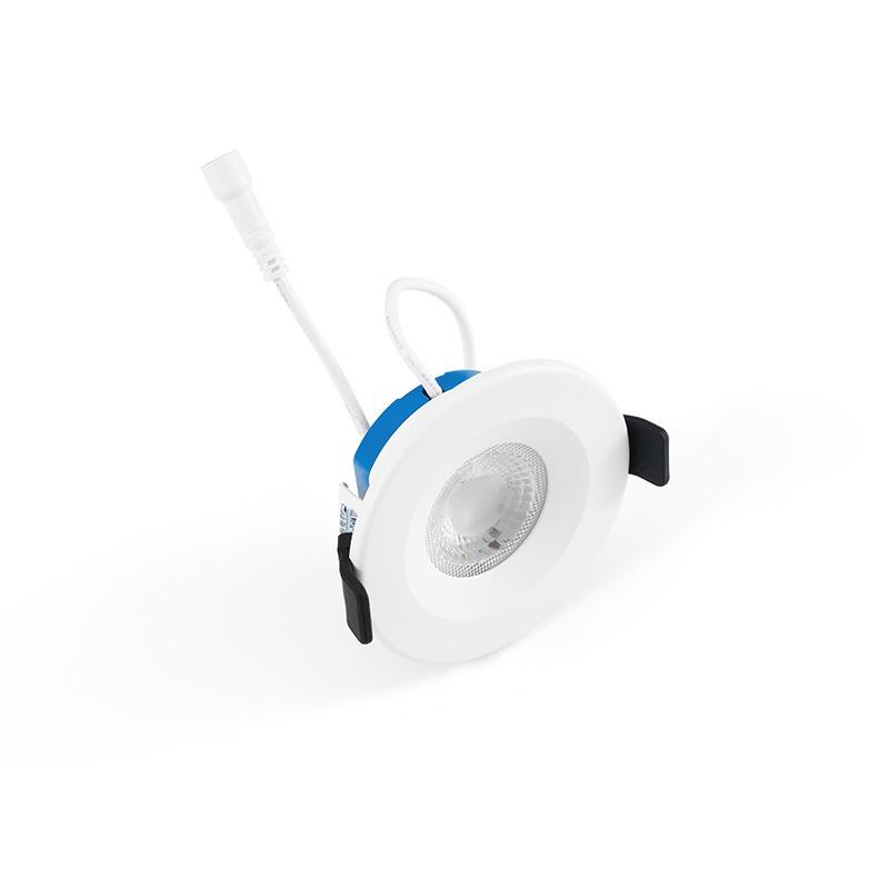Faretto da incasso, ?90*H29mm, ritaglio ?68-73mm, non orientabile, Triac Dim, copribile, dip switch 3W/4.5W, dip switch 3CCT 2700K/3000K/4000K, 350lm/550lm, 120lm/W, UGR<29, IP65 anteriore/IP20 posteriore, IK02,BA60, SDCM<5,-20?C~40?C, 50000h L80B10 (50000h L80B10 per LED, 50 000h per driver), 5 anni di garanzia, Driver esterno LDS, Bridgelux SMD 2835 LED, Classe II, Bianco (RAL9016, Lucido), Corpo in ferro + Finiture PC + Lente PC, PF0.7, 50/60Hz, RG1, RA80, collegabile, senza sfarfallio, cavo da 0,5 m con connettore CC, cavo da 0,15 m con scatola di connessione rapida per PC. Certificato: CE, Erp, RoHS, REACH, BBC/RE2020