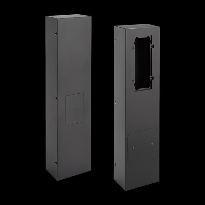 Palo multifunzionale in tecnopolimero completo di coperchi amovibili (da asportare nel caso si applichino apparecchi) e relativa bulloneria. Obbligatoria l’installazione del modello 506-L, non compreso. Colore corten.