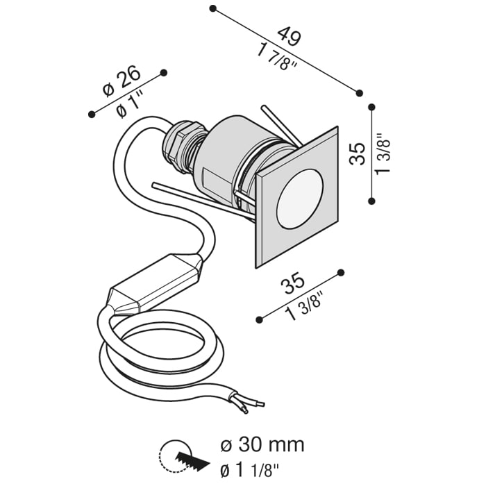 LOMBARDO - LOMLL107007L3 CNC 35 Q LED 24V L 3K 2W INOX - LL107007L3
