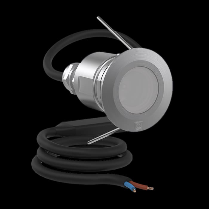Adatto per installazioni a parete e soffitto, anche per uso esterno. Idoneo per incassi da terra ad uso calpestabile, fissaggio mediante armatura da incasso fornita a parte. Prodotto finalizzato all’impiego di sorgenti luminose a LED per luce di accento e segnalazione. Corpo e ghiere in acciaio AISI316L. Diffusore in vetro temprato. Guarnizioni in silicone. 1.5 m di cavo di alimentazione H05RN-F pre-cablato e bloccato tramite pressacavo in Ottone Nichelato. Dimmerazione disponibile. Bulloneria in acciaioinox A4 o AISI 316L. Tutti i cavi sono provvisti di una speciale guaina che protegge il faretto dalle infiltrazioni di acqua e umidità. La molla di ritenuta si adatta sia per applicazioni che prevedono l'utilizzo di armatura da incasso che direttamente in controsoffittature in cartongesso. Versione in tensione costante 12/24V. Versione in corrente costante 350 mA/500 mA: utilizzare esclusivamente alimentatori di tipo SELV o equivalenti. Tutti i cavi vengono forniti integrati di un sistema elettronico checonsente il collegamento non polarizzato del faretto. CNC 25/ 35: il dispositivo elettronico inoltre, impedisce l'interruzione di linee di faretti collegati in serie nel caso di guasto di un singolo prodotto. Nessun rischio fotobiologico, RG0 gruppo di rischio esente (EN62471). LED 4000K (N), 3000K (3), 2700K (2), o BLU. Alimentatore escluso. Versione ghiera tonda, possibile scelta di 3 differenti ottiche. Temperatura massima rilevata sul vetro 65°C. 2W. 180 lm.
