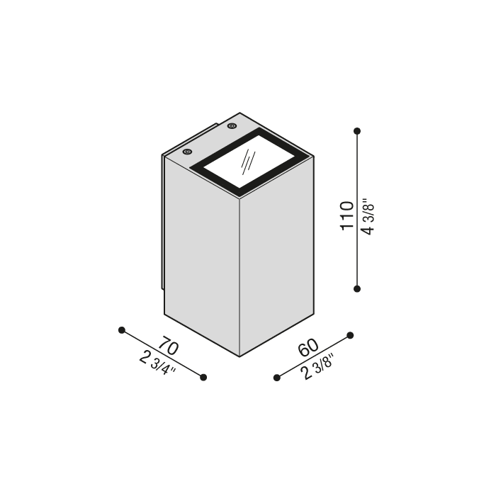 Trend U&D 60 Grigio High Tech RAL9006 • Adatto anche ad uso esterno. • Corpo in alluminio pressofuso; elevata resistenza all’ossidazione grazie al trattamento di cataforesi e alla verniciatura con resine poliestere stabilizzata ai raggi UV. • Diffusore in vetro temprato e serigrafato. • Guarnizioni in silicone. • Riflettore in alluminio anodizzato. • Bulloneria in acciaio inox A4. • LED 4000K (N), 3000K (3) o 2700K (2). Alimentazione diretta 220-240V. Nessun rischio fotobiologico, RG0 gruppo di rischio esente (EN62471).
