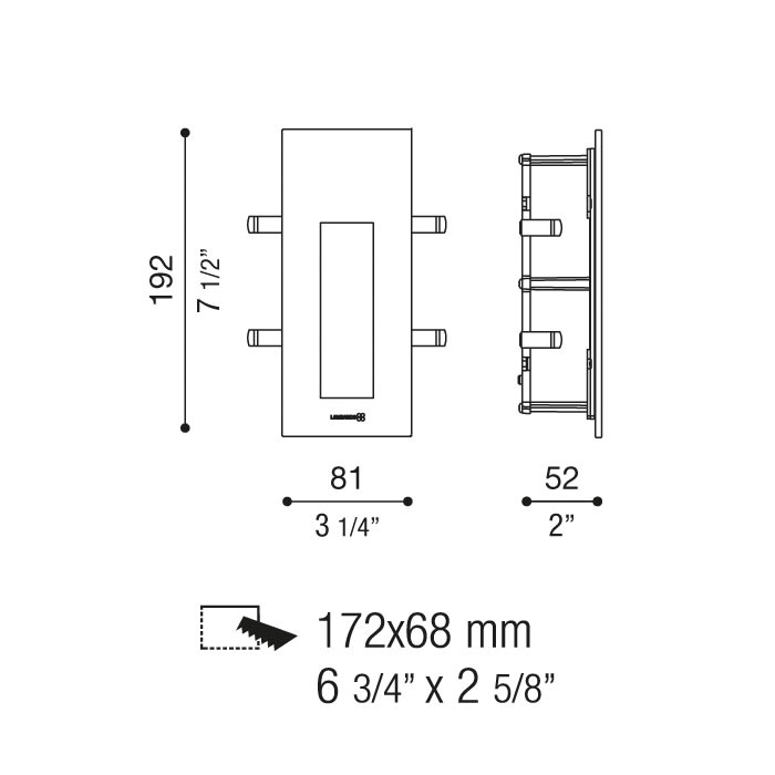 Adatto per installazioni a parete e controsoffittature in cartongesso o ad uso esterno. Corpo in alluminio primario pressofuso EN-AB44100; elevata resistenza all’ossidazione grazie al trattamento di passivazione a base di zirconio e alla verniciatura conresine poliestere stabilizzata ai raggi UV. Diffusore in vetro temprato e serigrafato. Guarnizioni in silicone. Bulloneria in acciaio inox A4 o AISI 316L. Modello brevettato.