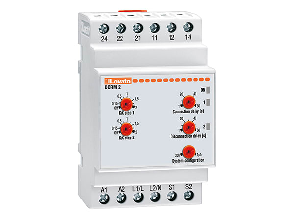 RELÈ PER IL CONTROLLO DELLA CORRENTE REATTIVA, SERIE DCRM. PER SISTEMI MONOFASE E TRIFASE A BASSA TENSIONE, 2 GRADINI