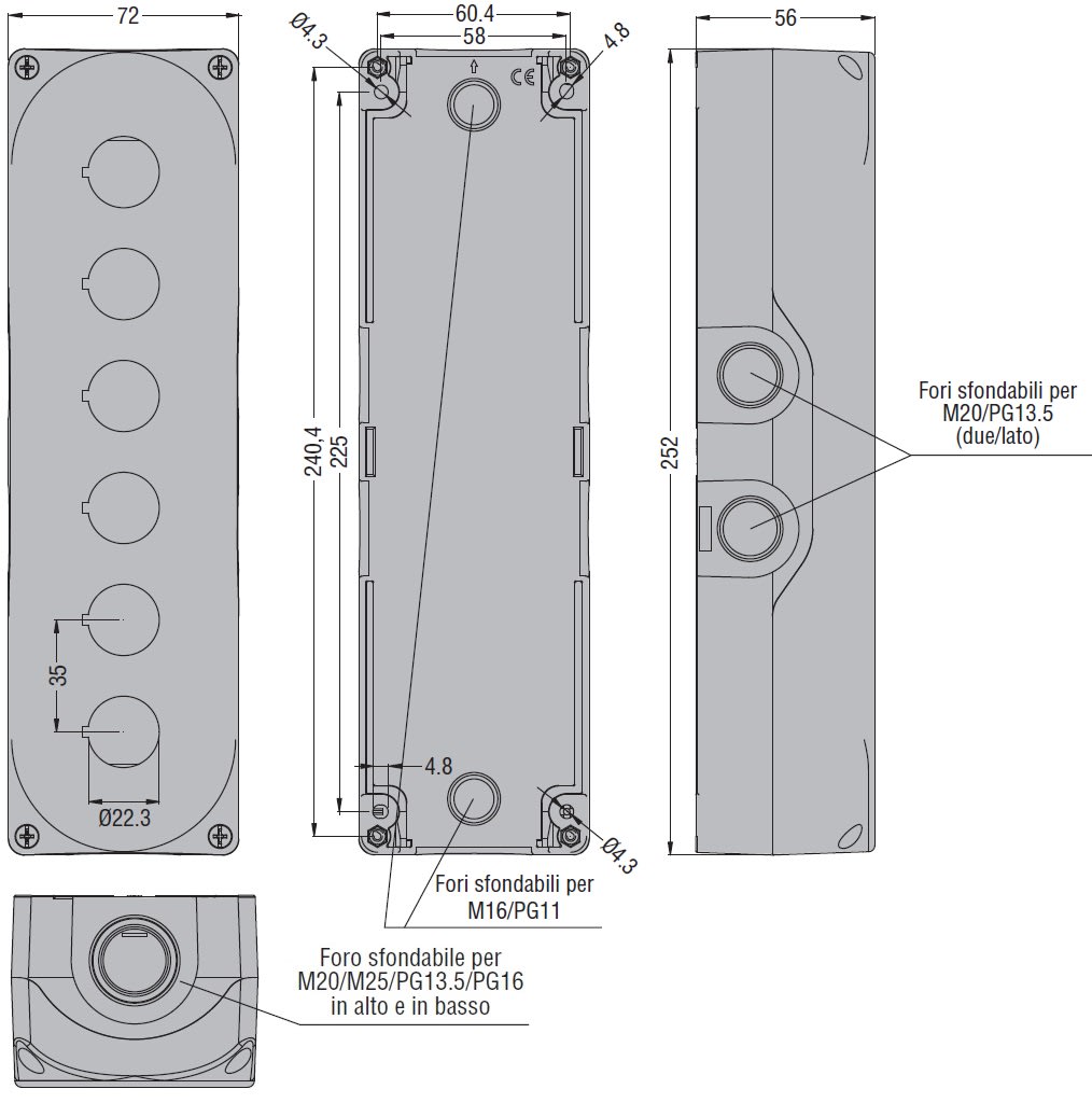LOVATO - LOVLPZP6A8 PULSANTIERA GRIGIA 6 OPERATORI - LPZP6A8