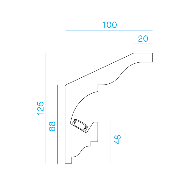 P16 - Profili lineari in gesso, realizzati in Italia con materiali naturali minerali e vegetali. Profilo prefinito in gesso per installazione a parete, effetto luce indiretta. Elemento completo di profili di alluminio per applicare una striscia LED. Chiusure laterali da effettuare durante il montaggio. 1pz PROF./BARRA/3E/1M profilo alluminio 1m. 1pz DIF.BAR/3E/1M con copertura trasparente. Striscia LED da ordinare separatamente.