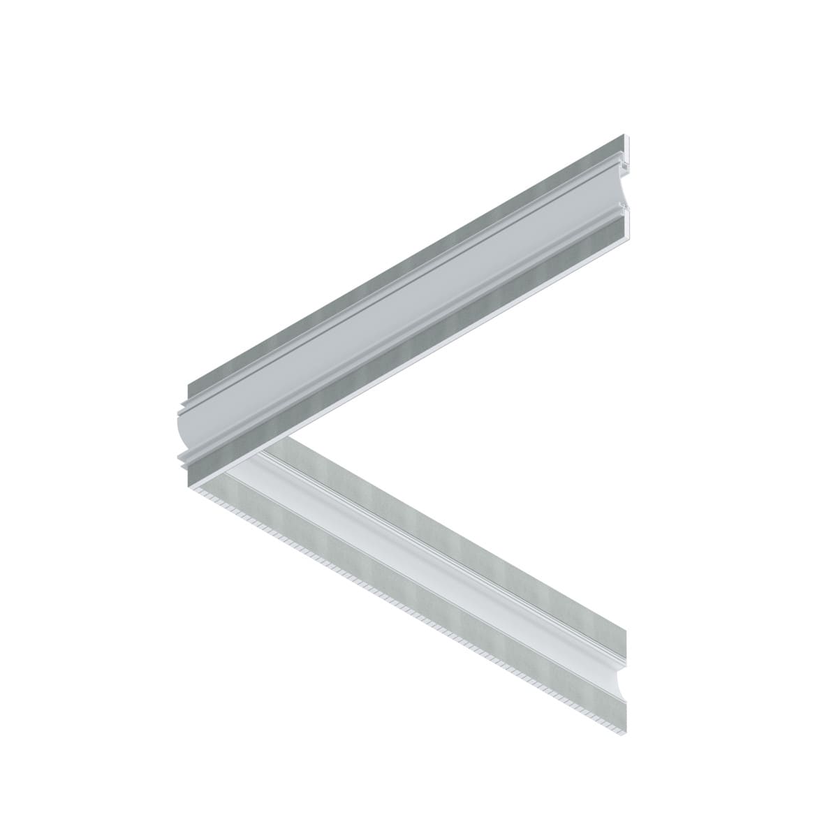 Profiloangolare per Strip LED tagliabile in opera, per realizzare linee di luce asimmetrica. Installabile su parete di cartongesso a doppia lastra, o in controsoffitto su lastra singola. Installabile su muratura solo rivestita con doppia lastra di cartongesso. Corpo in cartongesso di spessore 12,5 mm da lastra HYDRO (a ridotto assorbimento di acqua, utilizzabile in ambienti con umidit? relativa costante dell?aria ?70%). Profilo dissipante in lega di alluminio verniciato bianco e schermo di protezione inPMMA opale inclusi. Testate terminali, kit di giunzione, Strip LED e alimentatore elettronico 24Vdc remoto da ordinare a parte.