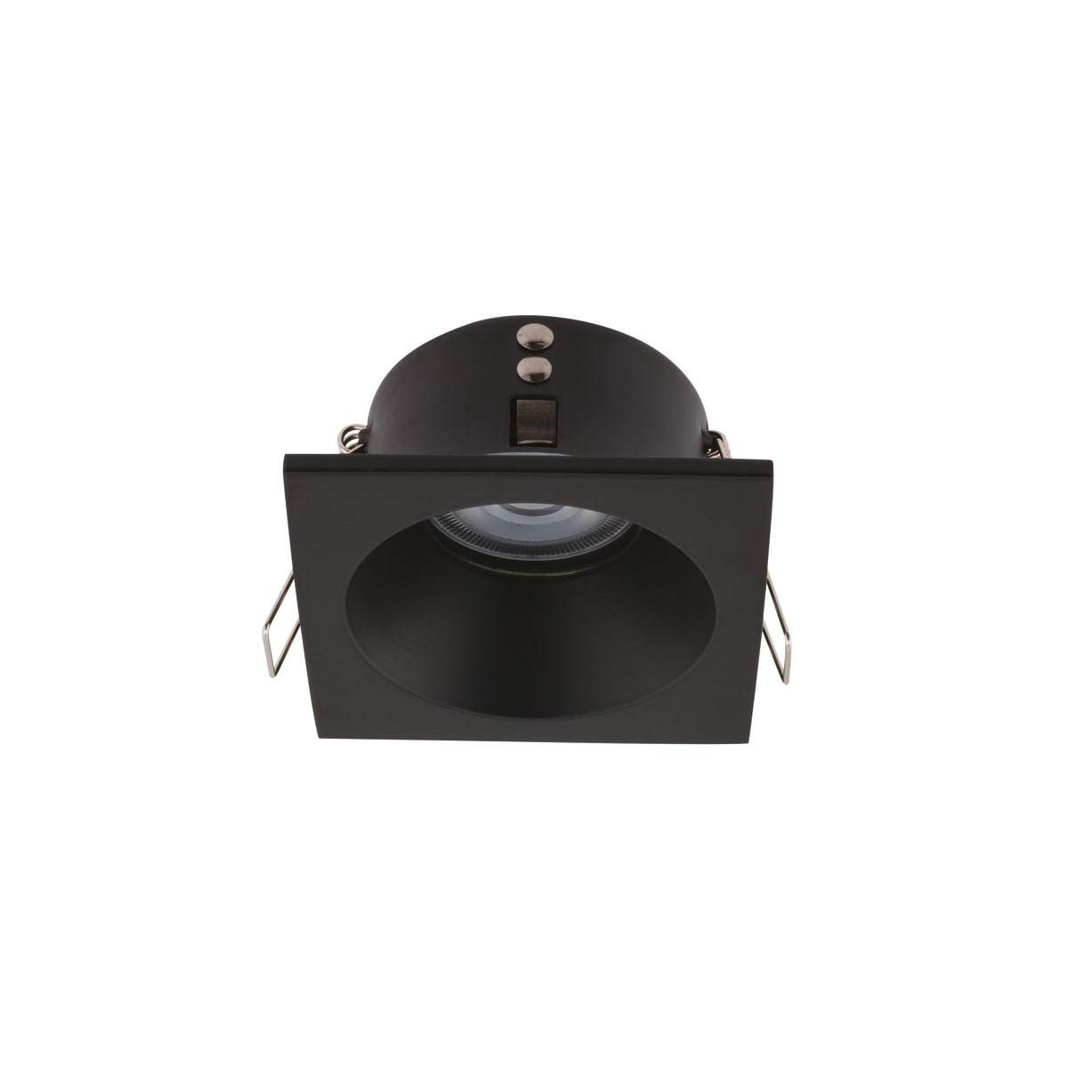 MIND: Faretto IP54 tondo o quadrato per installazione ad incasso su controsoffitto in cartongesso o pannelli con struttura a vista. Con cornice in battuta in alluminio verniciato bianco o nero e Vetro trasparente