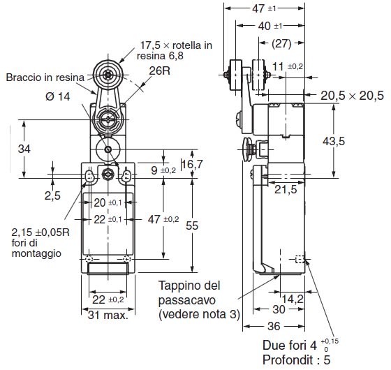 OMRON - OMRD4N4A20R-1708310 FC,MECC,M20,1NO+1NC,LENTO,LEVAEROTELLA - D4N4A20R-1708310