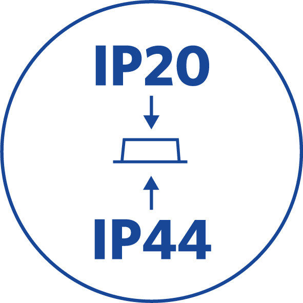 Faretto LED a incasso con angolo di inclinazione di 25°. Fascio luminoso ottimale garantito dal nuovo design del riflettore microsfaccettato. Flicker Free per illuminazione d'accento ottimale. Diametro del foro di montaggio universale di 68 mm. IP44 vanoapparecchio.