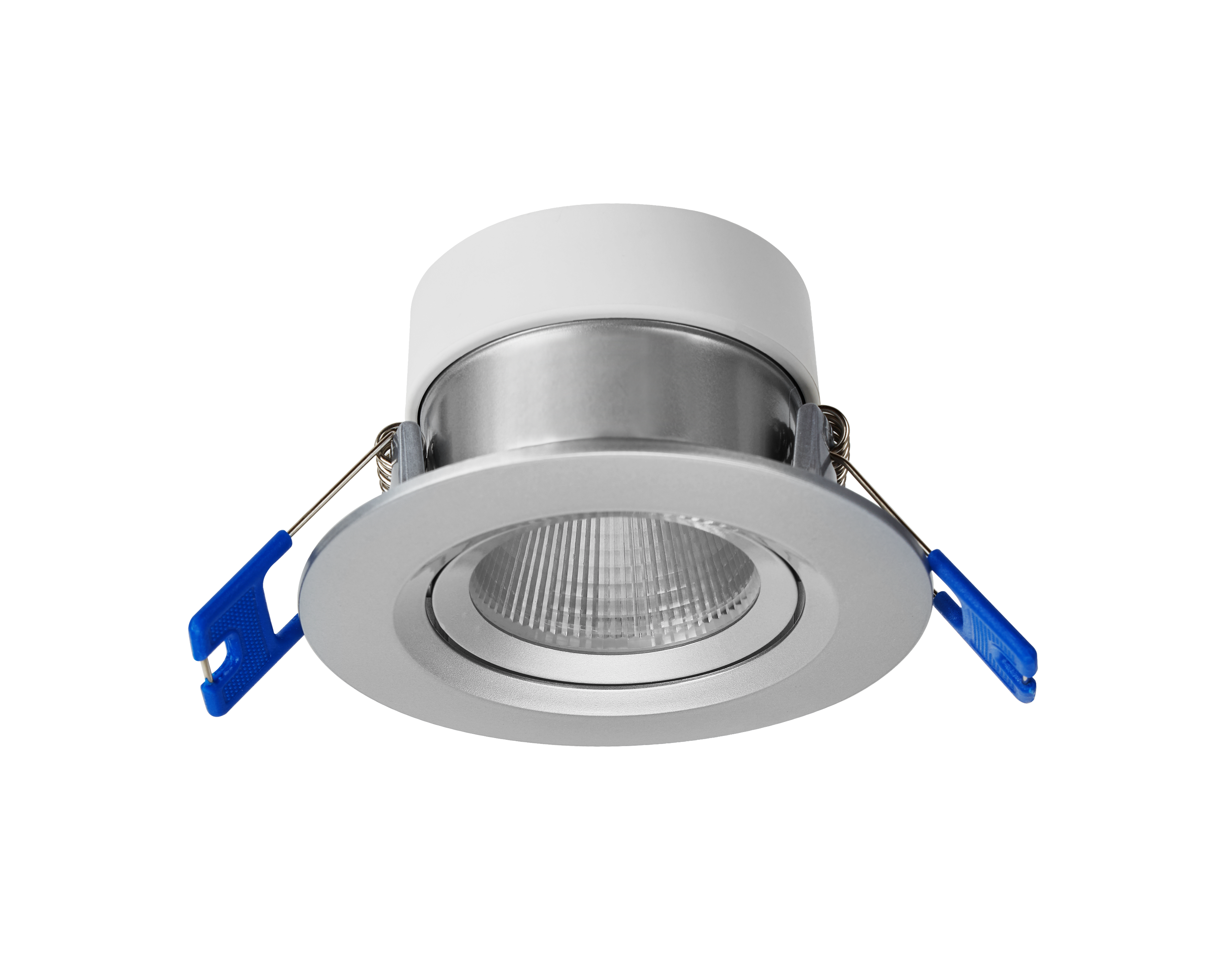 Faretto LED a incasso con angolo di inclinazione di 25°. Fascio luminoso ottimale garantito dal nuovo design del riflettore microsfaccettato. Flicker Free per illuminazione d'accento ottimale. Diametro del foro di montaggio universale di 68 mm. IP44 vanoapparecchio.
