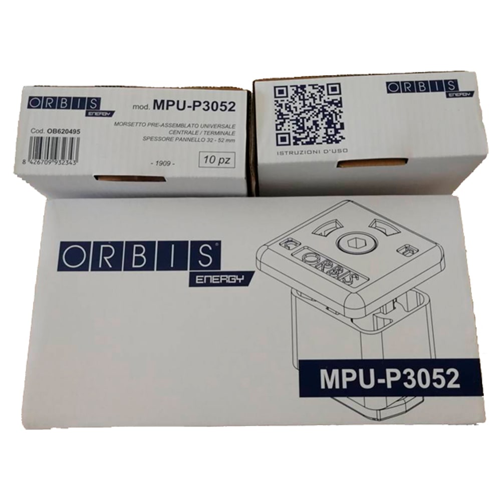 MPU-P3052 è un dispositivo che consente di bloccare i moduli fotovoltaici ai profili di sostegno della serie EASY TECH, EASY TECH SMALL, EASY, EASY+, HEAVY MAX, EASY SMALL, EASY WING, EASY WING SMALL. Costituito da due elementi, base e testa, il dispositivo è configurabile per essere utilizzato sia come Morsetto CENTRALE che come TERMINALE, mediante rotazione della testa. Il morsetto alla base è dotato di un elemento a T che permette di vincolarlo al profilo, mentre una vite passante tra base e testa, permette di adattare la morsa, esercitata dalla testa, allo spessore del modulo fotovoltaico, che può variare da 32 a 52 mm.\n\nCARATTERISTICHE TECNICHE\n\n - Materiale Morsetto: Lega di Alluminio ADC12\n - Vite: Inox A2 TCE M8x45\n - Molla: Ferro Zincato (ciclo di lavorazione Fe/Zn 7 II)\n - Altezze Moduli consentite: da 32 mm a 52mm\n - Distanza fra moduli: 32 mm\n - Colore: Alluminio naturale