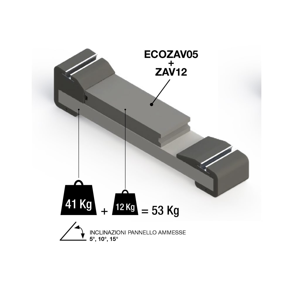 Zavorra in cemento per impianti fotovoltaici. Idonea come zavorra aggiuntiva per - ECOZAV con inclinazione 5°,10° e 15° nel caso in cui se ne installi 1 - ECOZAV con inclinazione 15° nel caso in cui se ne installino 2 Ogni zavorra pesa 12kg ed il numero elementi da installare dipende dalle condizioni e dal tipo di impianto scelto. CARATTERISTICHE TECNICHE -Materiale: Calcestruzzo -Dimensioni: 492mm x 192mm x 77mm -Peso: 12kg