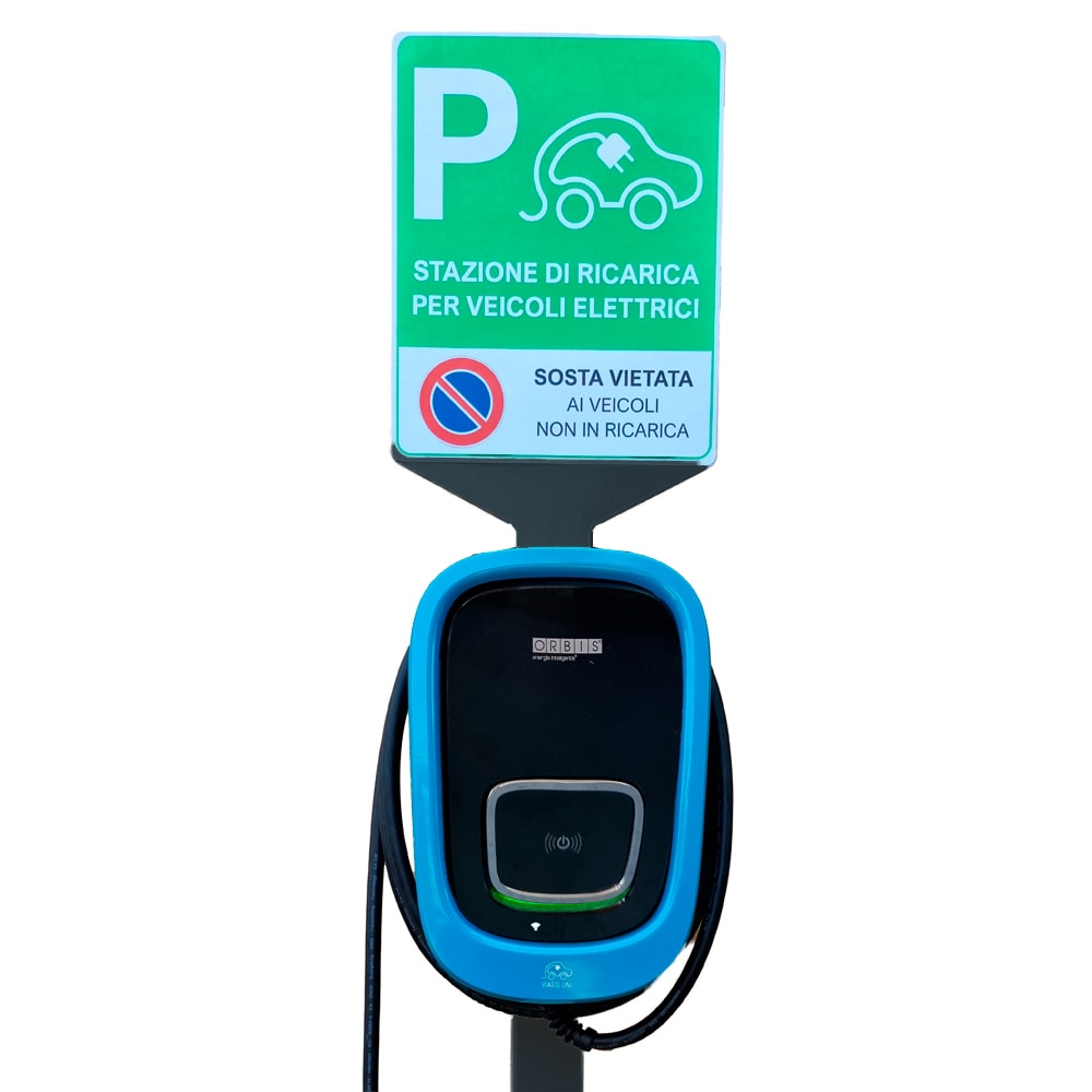 Adesivo indicante la possibilità di posteggio per i veicoli in ricarica \n\nCARATTERISTICHE TECNICHE\n\n- Materiale: vinile adesivo polimerico con protettivo UV\n- Modello supporto : Supporto per cartello adesivo (OB900515)\n- Dimensioni (L x A): 260 x 320 mm