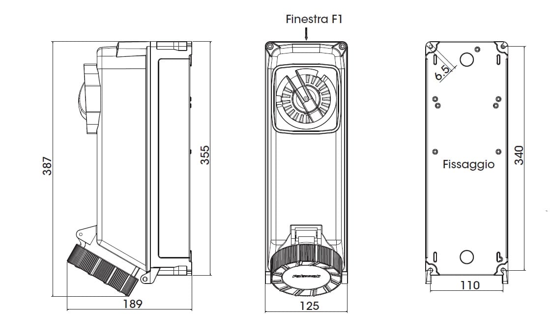 TAIS PRESA FISSA INTERBLOCCATA IN TERMOINDURENTE 2P+T 63A 100-130V 4H 50-60HZ FUSIBILI DIII(E33) IP67 >IK10