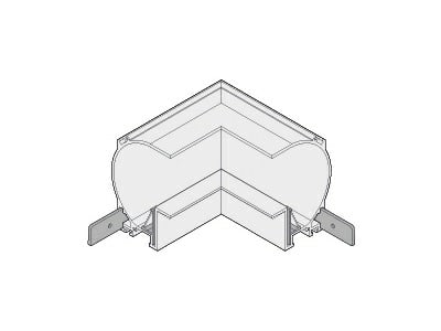 Elemento di collegamento per due linee di profili componibili con angolo 3 di giunzione verticale interno di 90° per installazione incassta a scomparsa parete-parete / soffitto-soffitto misure esterne 110x110mm. Bianco opaco.
