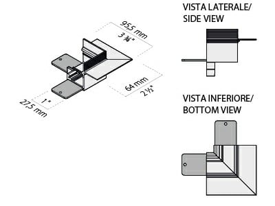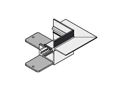 Elemento di collegamento per due linee di profili componibili con angolo 1 di giunzione piano esterno di 90° per installazione incassta a scomparsa parete-parete / soffitto-soffitto misure esterne 64x64mm. Bianco opaco.